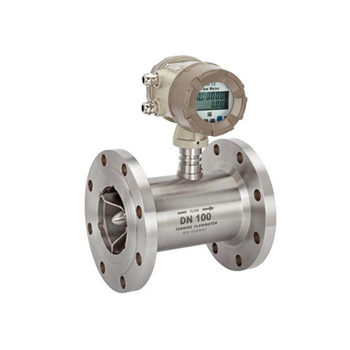 流體流經液體渦輪流量計表體,由于葉輪的葉片與流向有一定的角度,流體的沖力使葉片具有轉動力矩,克服摩擦力矩和流體阻力之后葉片旋轉,在力矩平衡后轉速穩定,在一定的條件下,轉速與流速成正比,由于葉片有導磁性,它處于信號檢測器(由磁鋼和線圈組成)的磁場中,旋轉的葉片切割磁力線,周期性的改變著線圈的磁通量,從而使線圈兩端感應出電脈沖信號,此信號經過放大器的放大整形,形成有一定幅度的連續的矩形脈沖波,可遠傳至顯示儀表,顯示出流體的瞬時流量或總量。