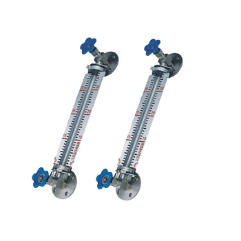 儀表上下閥都裝有PN1.6MPa,DN20的法蘭。通過焊接在容器上的法蘭,與容器組成連通器,透過玻璃管就可直接顯示容器內介質液位的高度。